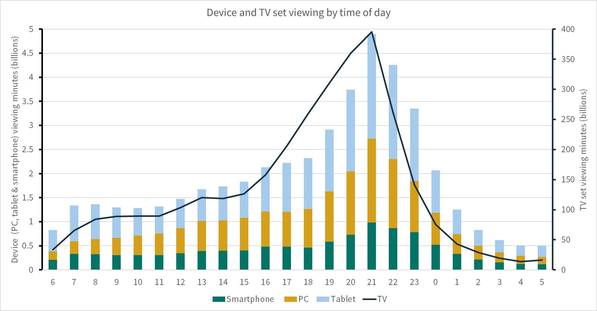 Barb Explained – How we collect viewing data 2 – Device and TV set viewing by time of day Published 14 December 2018 at 1904 × 991 in Barb Explained: How we collect device-based census data Source: Barb, January – September 2018 Note: TV set viewing is plotted on a separate axis to device (smartphone, PC and tablet) viewing. Data are for identified viewing to BARB-reported channels on TV sets / tagged BVOD services on devices. Device data are census data.